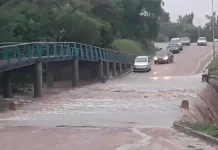 La crecida del arroyo Salto cortó el puente de acceso a...