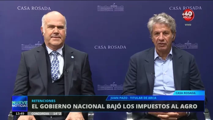 Juan Pazo, titular de la Agencia de Recaudación y Control Aduanero –ARCA-, anticipó que el Gobierno nacional está próximo a oficializar la baja de retenciones anunciada por Javier Milei el fin de semana en la Rural.