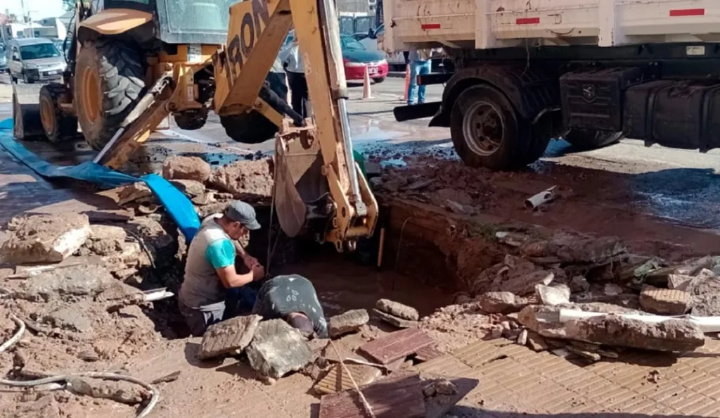 Concluyó la reparación de una cañería distribuidora del suministro de agua, en el tramo entre calles Paraguay y Bavio, que se había iniciado en las primeras horas de la mañana en Paraná.