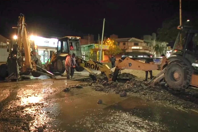 Cerca de la medianoche concluyó la obra de reemplazo de una válvula de enlace entre el caño maestro de impulsión hacia un ramal de cañería distribuidora de 110 milímetros, en calle Provincias Unidas.