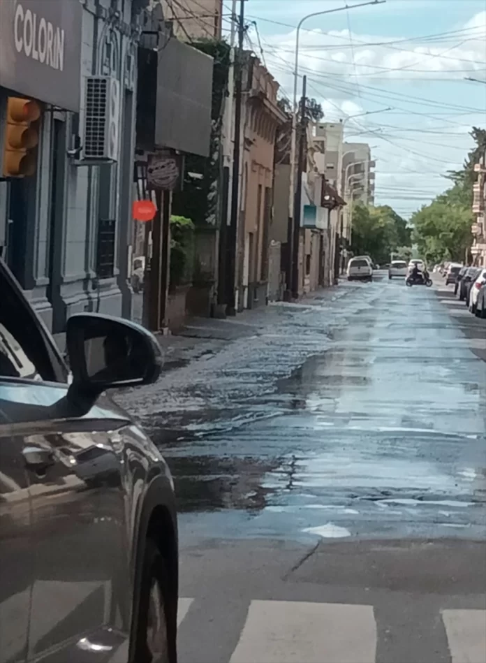 Una rotura en un caño de 200 mm de diámetro provocó un corte de tránsito en calle La Paz, entre Corrientes y la Peatonal, en pleno centro de Paraná y un importante caudal de agua circulando por la arteria.