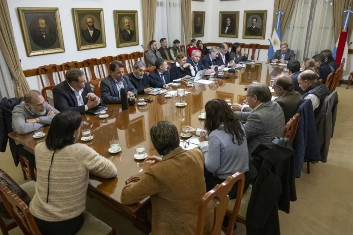 El encuentro se desarrolló en el salón de Los Gobernadores de Casa de Gobierno. Participaron la vicegobernadora, Alicia Aluani; ministros y secretarios del ejecutivo, y el presidente de la Cámara de Diputados, Gustavo Hein.