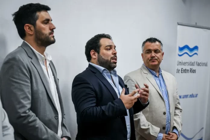 “Son créditos y préstamos blandos para cooperativas de hasta 50 millones de pesos para seguir fortaleciendo las cooperativas”. indicó el ministro de Gobierno y Trabajo, Manuel Troncoso, acompañado por la presidenta del Instituto, Maria Laura Renoldi y el decano de la Facultad de Ciencias Económicas de la Universidad Nacional de Entre Ríos, Sebastián Pérez.