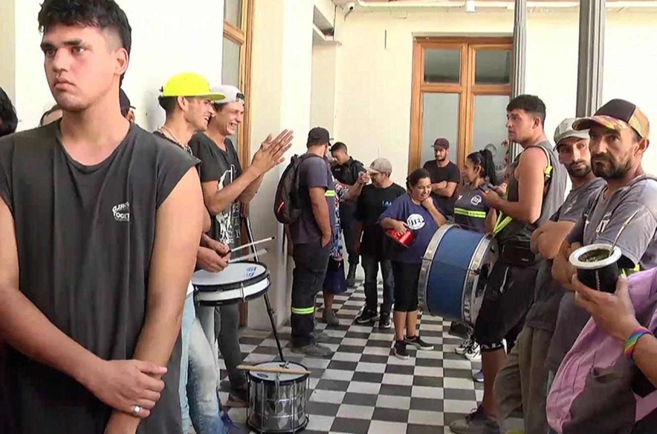 La arremetida con bombos y redoblantes comenzó a las 9.49 de la mañana. Luego de manifestarse en el interior y de intentar forzar la firma de un “convenio” con el Gobierno local, abandonaron el edificio y se fueron a la Plaza 1º de Mayo. De allí partieron a bordo de un vehículo utilitario poco después de las 12.30.