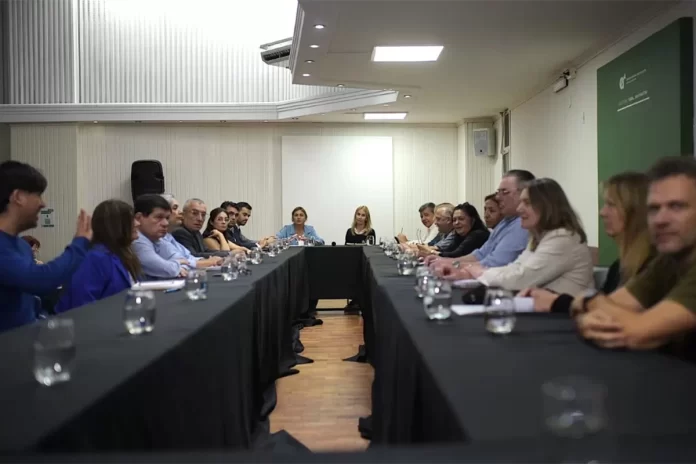 El encuentro fue encabezado por el ministro de gobierno, Manuel Troncoso y la presidente del CGE, Alicia Fregonese, junto a autoridades educativas del gobierno de la provincia y los diferentes gremios docentes, se dio en el auditorio «Gral San Martín», del Consejo General de Educación.
