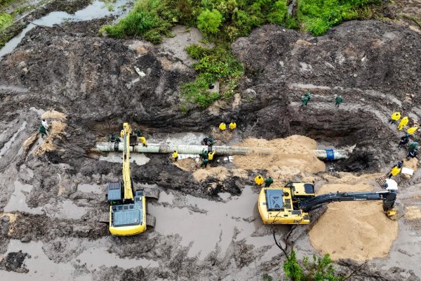 Bajo condiciones meteorológicas adversas, a una profundidad de más de cinco metros en un terreno muy inestable, personal municipal ejecutó el reemplazo de unos 20 metros de cañería de PRFV de 900 milímetros.