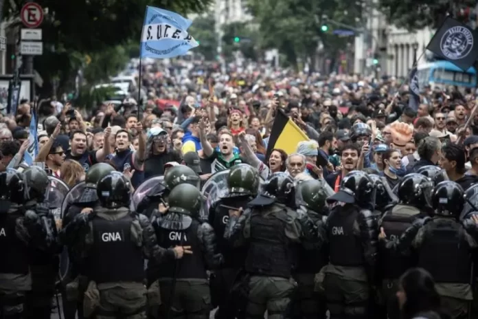 Se registraron graves incidentes en las inmediaciones del Congreso, donde un masivo operativo de las fuerzas de seguridad impidió a los manifestantes reunirse en un punto de encuentro y dio paso a que grupos violentos se enfrentaran con policías y gendarmes, que los dispersaron utilizando gases y detonaciones de balas de goma.