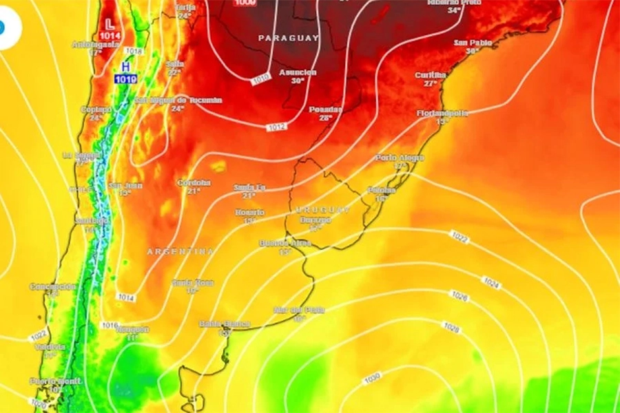 “El viento poco a poco irá ganando una dirección dominante del cuadrante norte, y esto irá impulsando el ascenso térmico, con valores vespertinos templándose hasta valores del orden de 20 °C en el norte”, adelantó el meteorólogo, Christian Garavaglia.