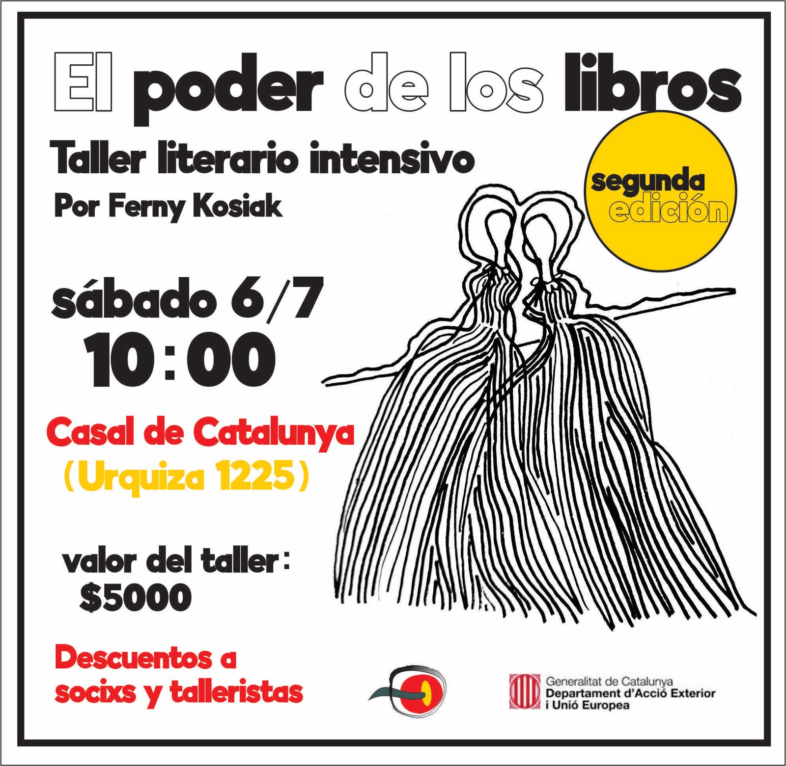 Descuento especial: socios y socias del Casal de Catalunya y asistentes a otros talleres creativos o literarios de Paraná contarán con un descuento del 25%.