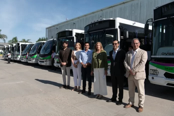 La Municipalidad presentó la flota 0 km del Nuevo Sistema de Transporte Urbano de Pasajeros. Las nuevas 77 unidades de la empresa San José son un paso fundamental para modernizar y mejorar la movilidad en Paraná. Comenzarán a circular con sus nuevos recorridos este domingo. La intendenta Rosario Romero realizó la presentación junto al gerente general de la firma, Hugo Ruiz, y el viceintendente David Cáceres. “Los paranaenses nos merecemos un servicio de transporte de calidad”, expresó Romero.
