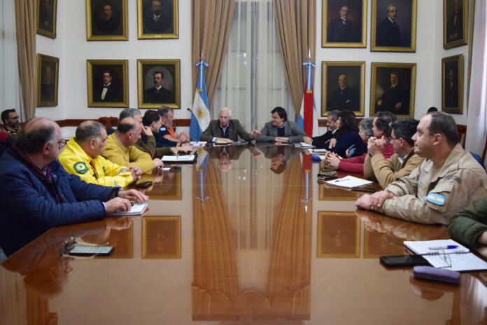 El ministro de Desarrollo Económico de Entre Ríos, Guillermo Bernaudo, y el subsecretario de Protección Civil de la Nación, Santiago Hardie, coordinaron un encuentro para avanzar en la ejecución de estrategias de contención de eventuales fuegos en la zona de islas. Lo hicieron junto a expertos de las áreas vinculadas a la prevención y el combate incendios de los Ministerios de Seguridad, Ambiente, y Salud de la Nación y personal de Prefectura y Gendarmería Nacional; como también de la Policía de Entre Ríos.