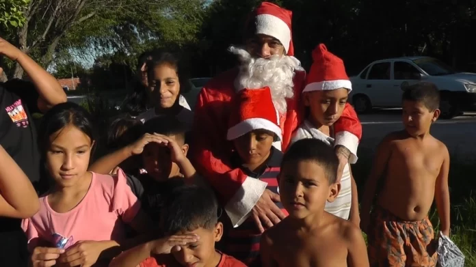 El barrio Humberto Illia, en calle Hernandarias, tuvo la posibilidad de disfrutar de la presencia de Papá Noel.