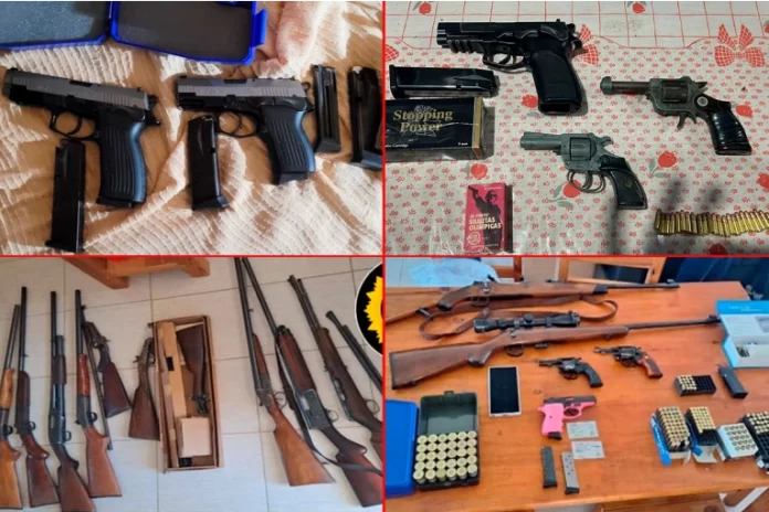 El detalle de los secuestrados indica 10 armas de fuego de puño, entre ellas de tipo pistola y revólver calibres 9 milímetros, 32 y 22. Hay unas 65 armas largas de fuego, entre ellas tipo escopeta, fusil y carabina. Unos 2.100 cartuchos de varios calibres, 32 plantas de marihuana, una balanza de precisión, dos frascos con cogollos de marihuana y nueve teléfonos celulares, más documentación.